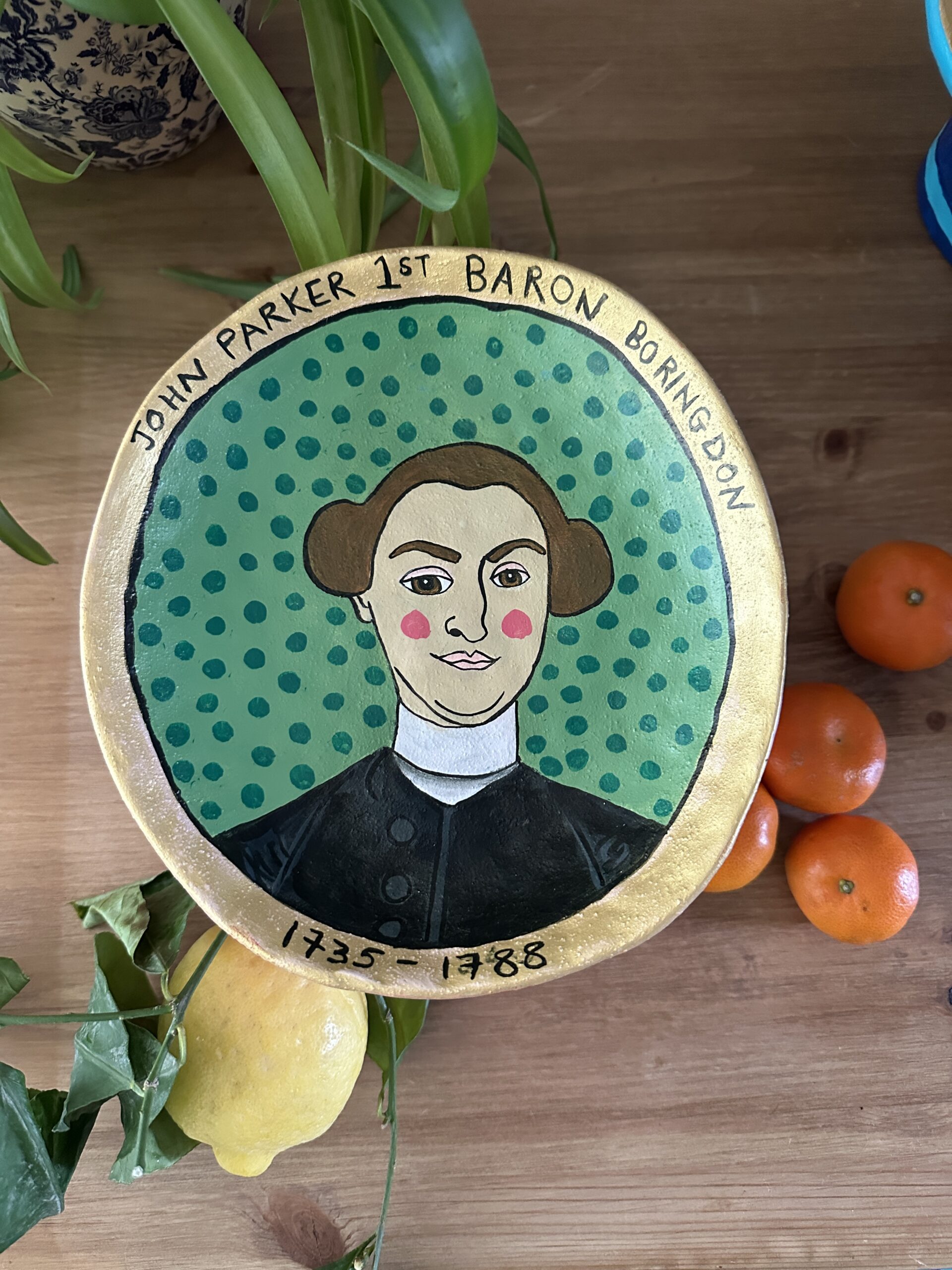 This is a ceramic dish from B&M that I have ‘Smalldonned’ in acrylic paint as it was a very boring white before. This one is celebrating John Parker who was the first owner of Saltram House in Plymouth.