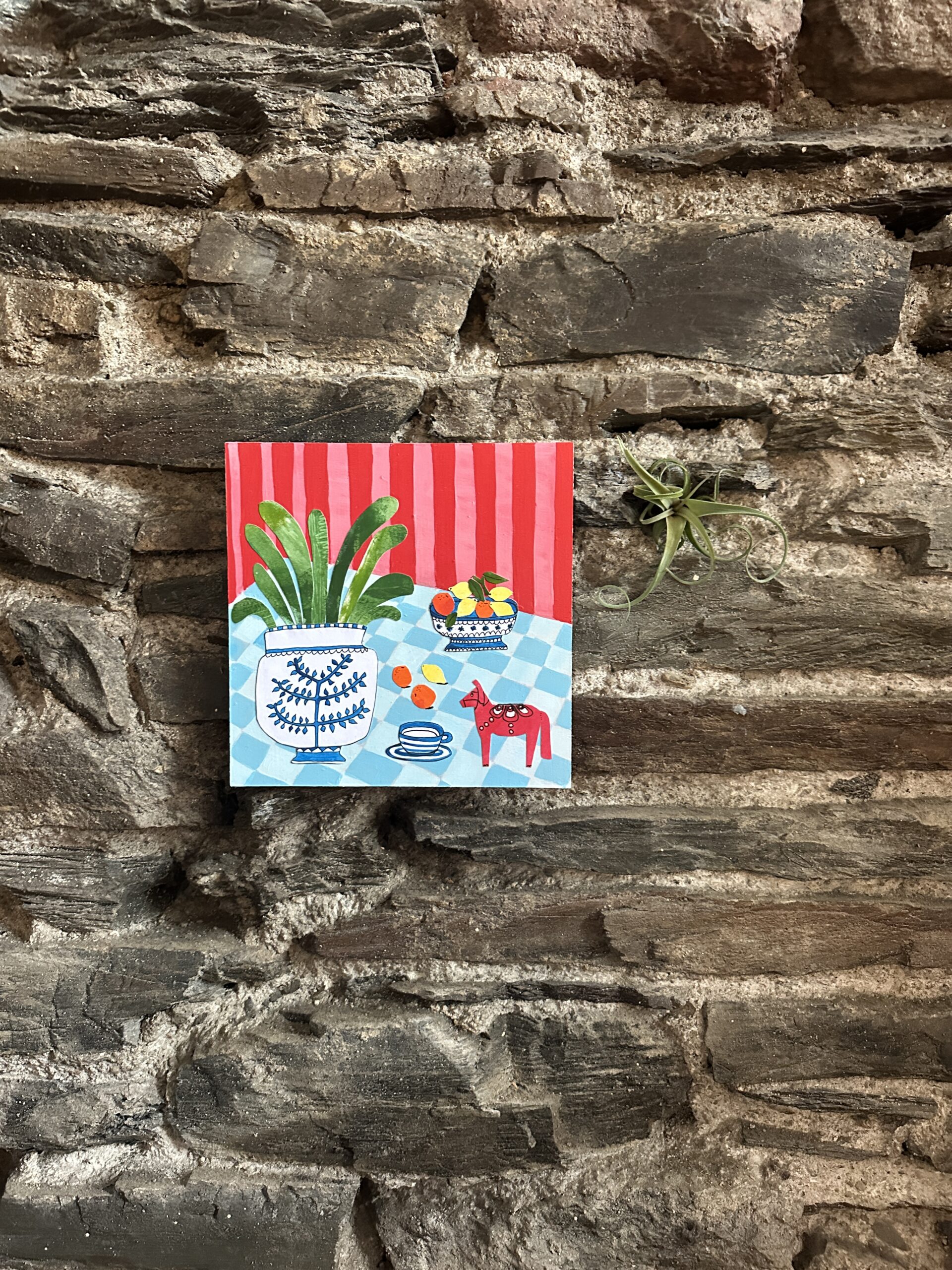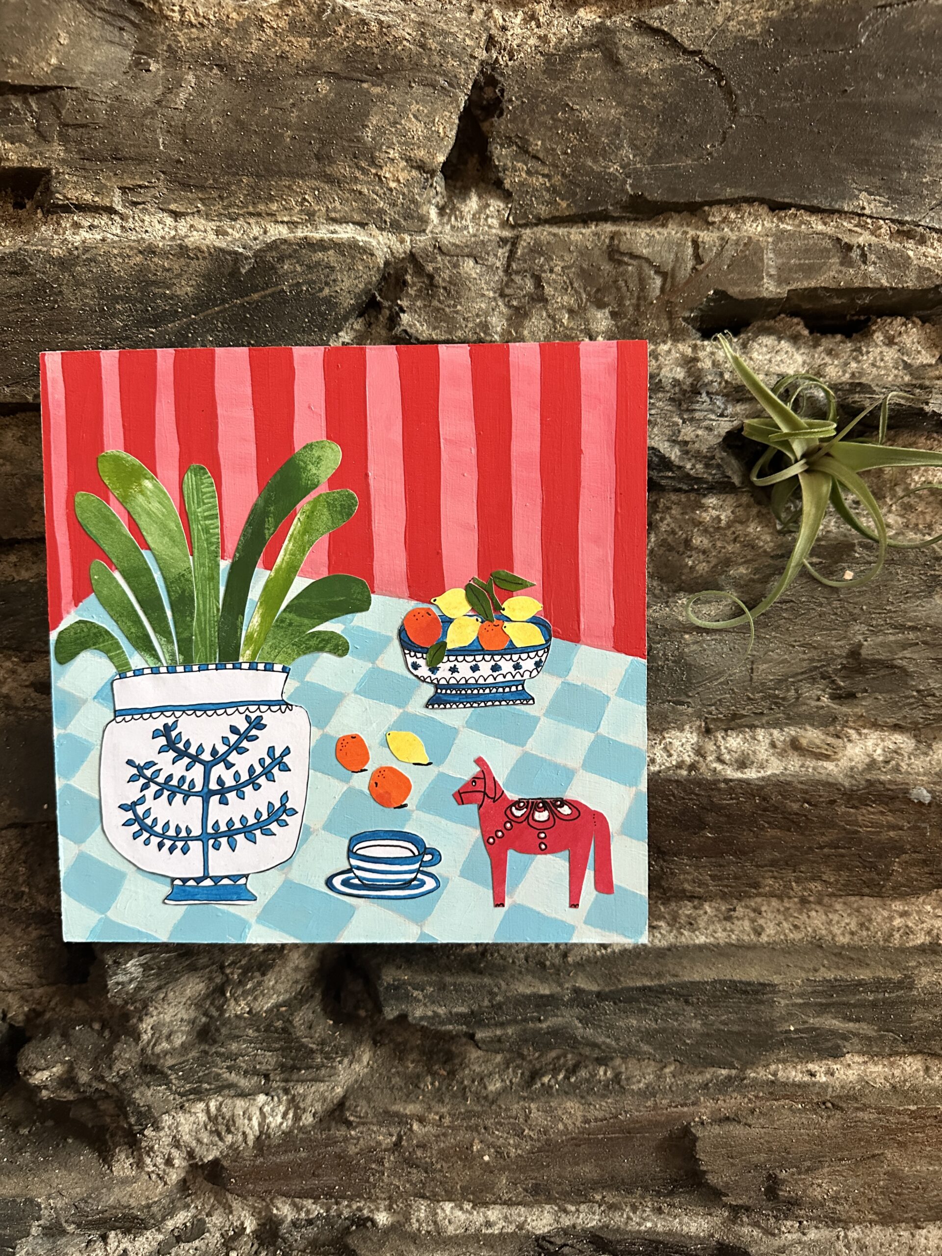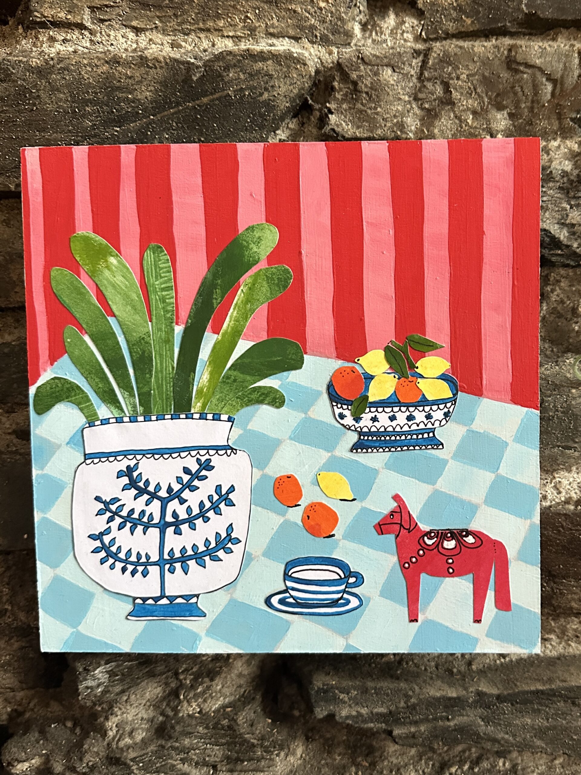6/100 dala horse on a table original collage painting £75